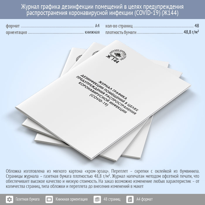 Журнал графика дезинфекции помещений в целях предупреждения распространения коронавирусной инфекции (COVID-19) (48 стр., Ж144) в Сочи купить