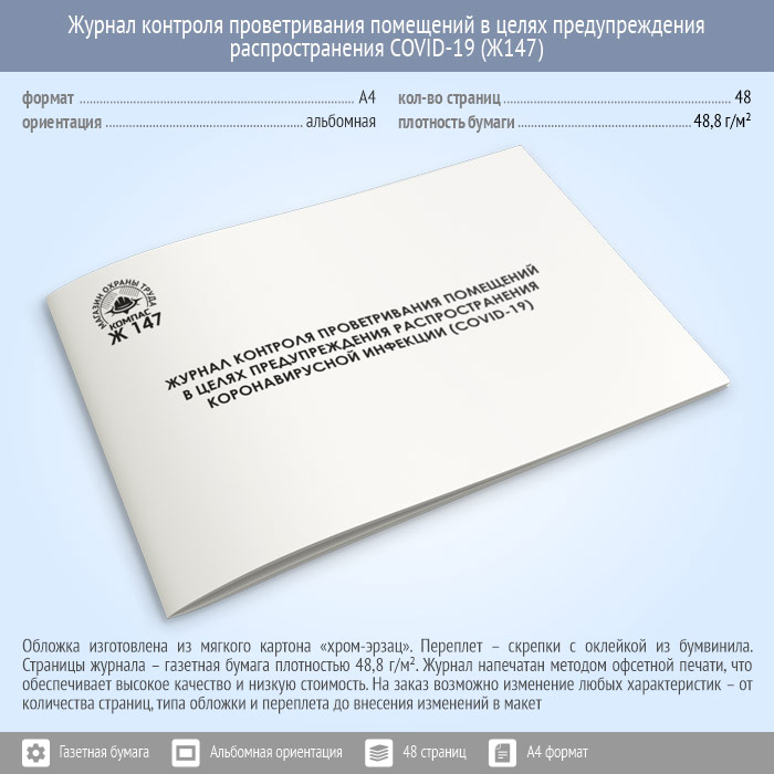 Журнал контроля проветривания помещений в целях предупреждения распространения коронавирусной инфекции (COVID-19) (48 стр., Ж147) в Сочи купить
