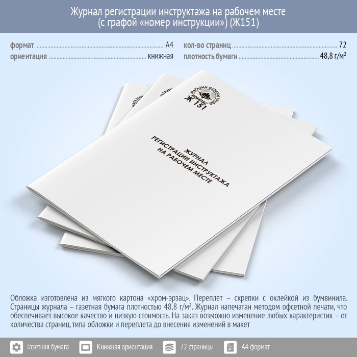Журнал регистрации инструктажа на рабочем месте (с графой «номер инструкции») (72 стр., Ж151) в Сочи купить