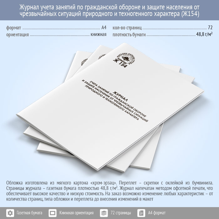 Журнал учета занятий по гражданской обороне и защите населения от чрезвычайных ситуаций природного и техногенного характера (72 стр., Ж154) в Сочи купить