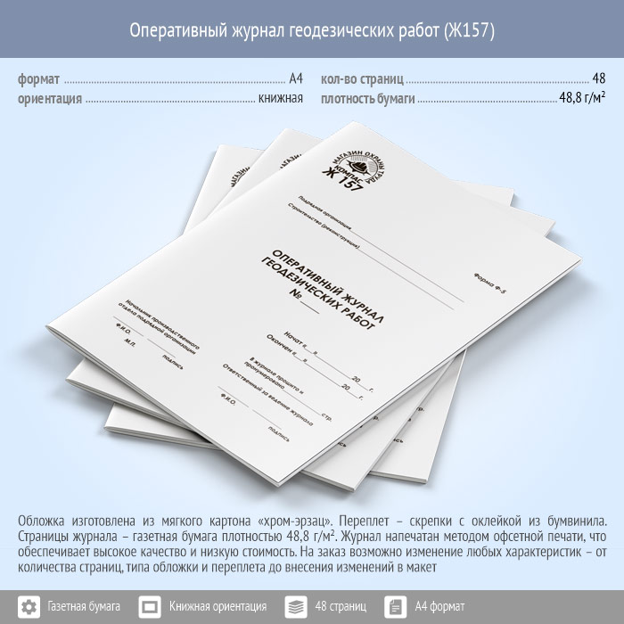 Оперативный журнал геодезических работ (48 стр., Ж157) в Сочи купить