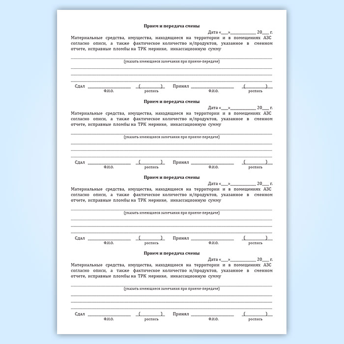 Журнал приема и передачи смен на АЗС в Сочи купить