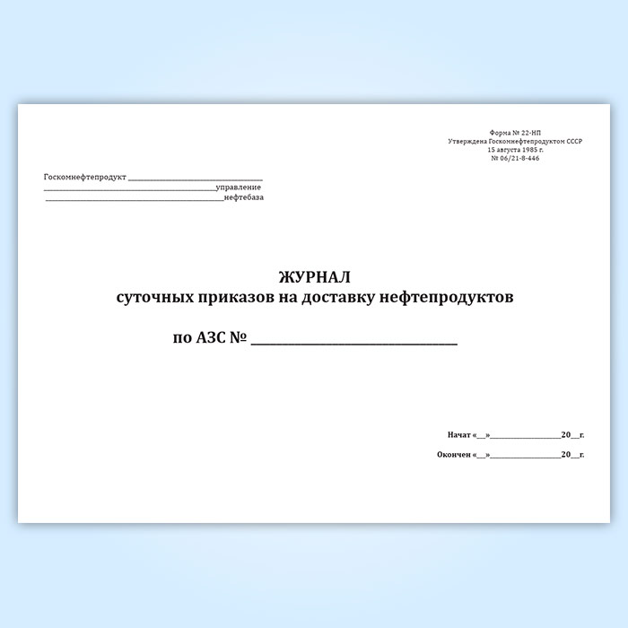 Журнал суточных приказов на доставку нефтепродуктов (форма № 22-НП) в Сочи купить