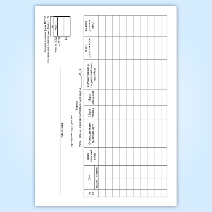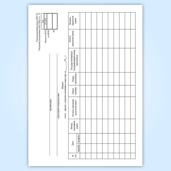 Журнал учета, приема и выдачи топливных смарт-карт в Сочи купить