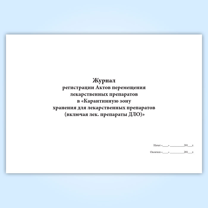 Журнал регистрации Актов перемещения лекарственных препаратов в «Карантинную зону хранения для лекарственных препаратов (включая лек. препараты ДЛО)» в Сочи купить