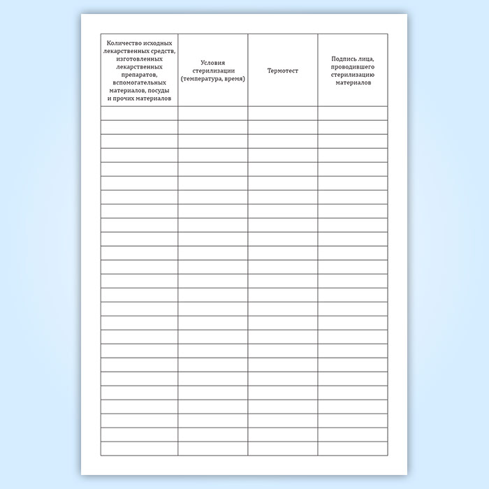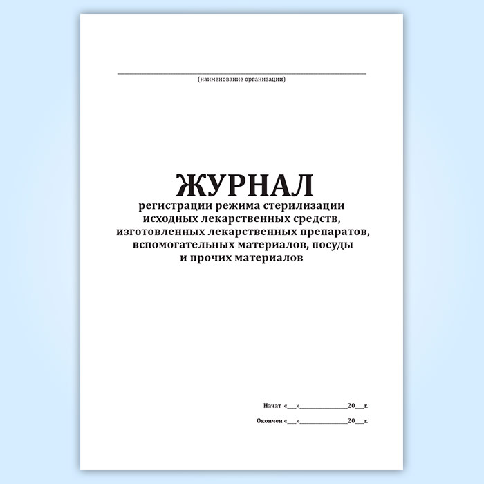 Журнал регистрации режима стерилизации исходных лекарственных средств, изготовленных лекарственных препаратов, вспомогательных материалов, посуды и прочих материалов в Сочи купить