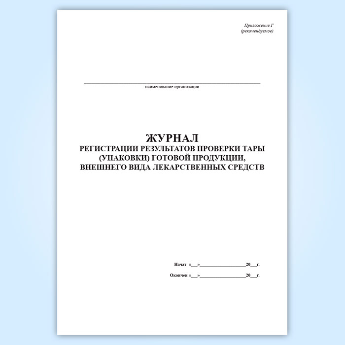Журнал регистрации результатов проверки тары (упаковки) готовой продукции, внешнего вида лекарственных средств (форма Г) в Сочи купить