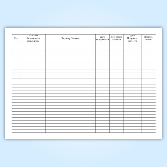 Журнал учета поломки аттракционов и игровых автоматов в Сочи купить