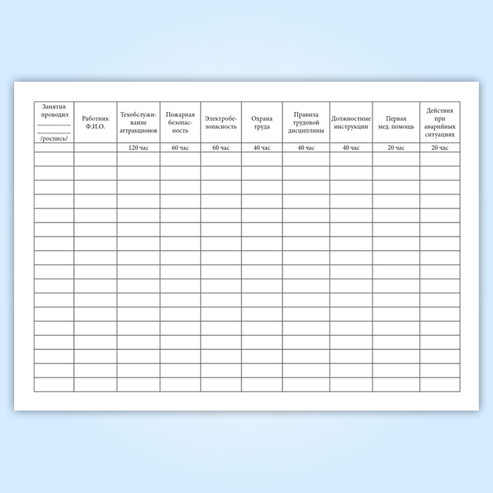 Журнал по обучению персонала передвижного городка аттракционов в Сочи купить