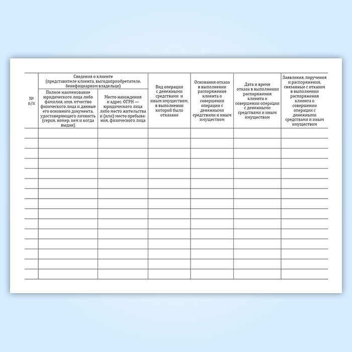Журнал учета отказов в выполнении распоряжения клиентов о совершении операции с денежными средствами и иным имуществом в Сочи купить