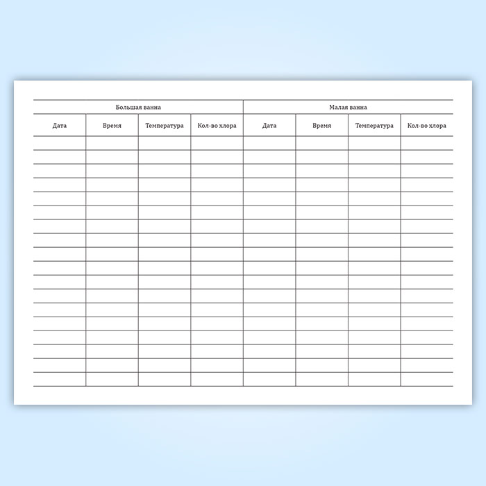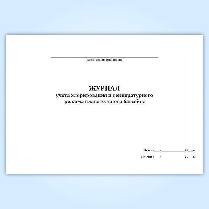 Журнал учета хлорирования и температурного режима плавательного бассейна в Сочи купить