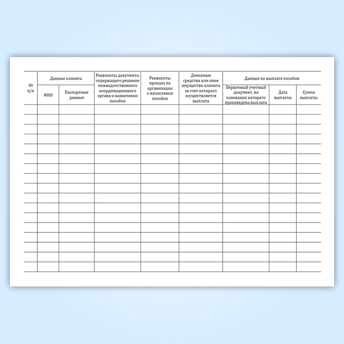 Журнал учета выданных денежных средств (ежемесячного гуманитарного пособия) в Сочи купить