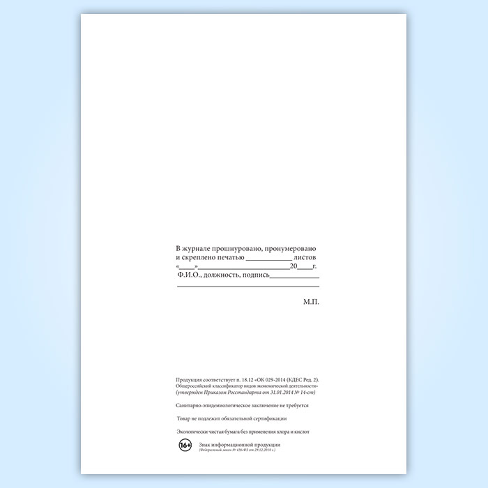 Вы получаете печатную продукцию прошнурованной и c местом для вашей печати в соответствии с действующими нормативными документами: