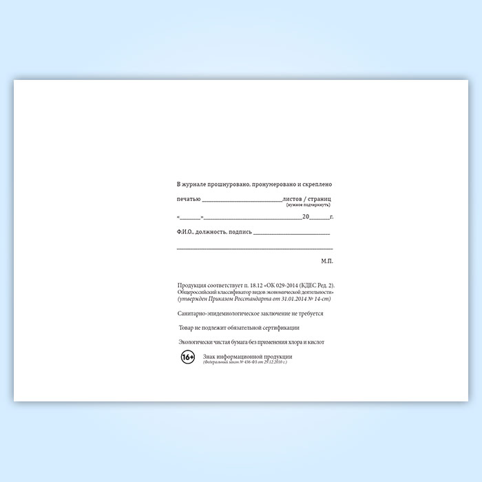 Вы получаете печатную продукцию прошнурованной и c местом для вашей печати в соответствии с действующими нормативными документами: