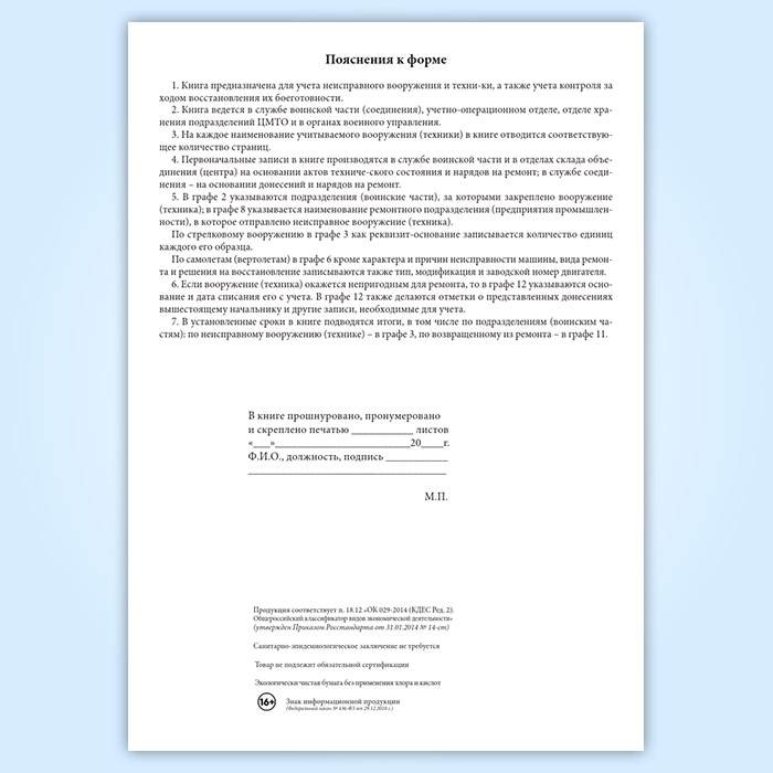 Книга учета неисправного вооружения и военной техники (форма 19) в Сочи купить