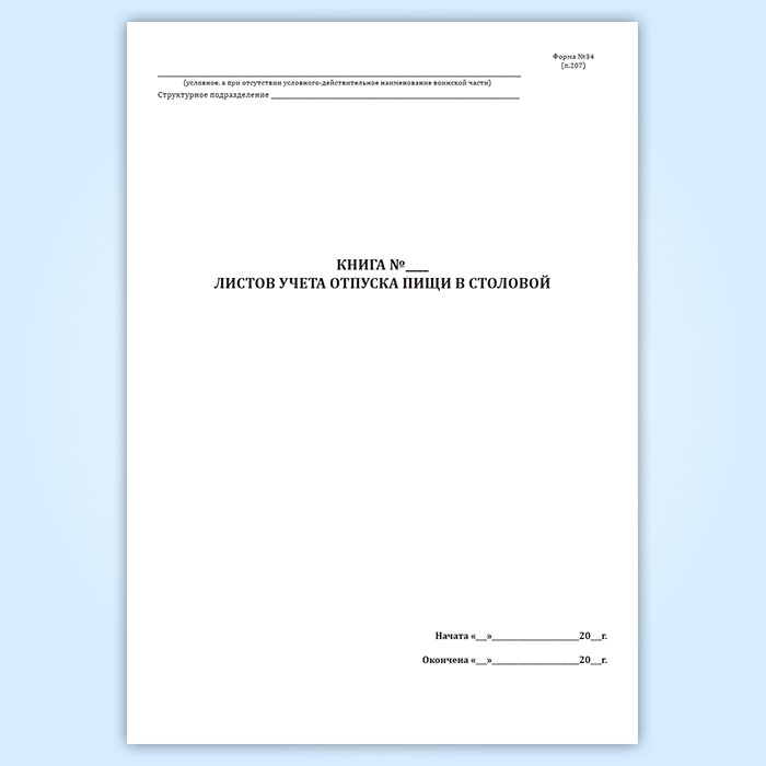Книга листов учета отпуска пищи в столовой (форма 34) в Сочи купить