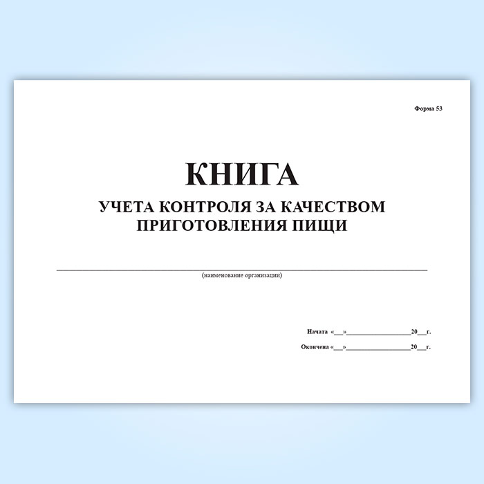 Книга учета контроля за качеством приготовления пищи (форма 53) в Сочи купить