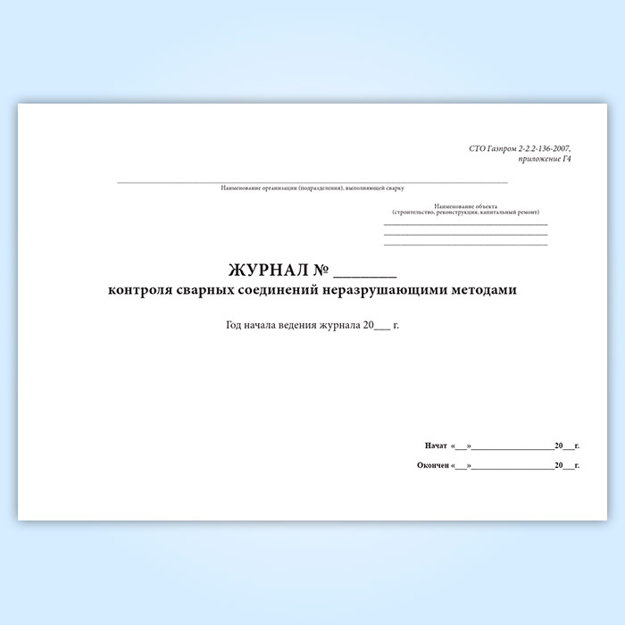 Журнал контроля сварных соединений неразрушающими методами в Сочи купить