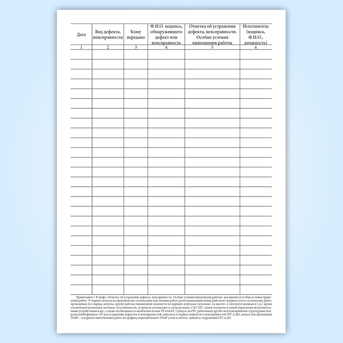 Журнал дефектов и неисправностей ГРС и ДО в Сочи купить