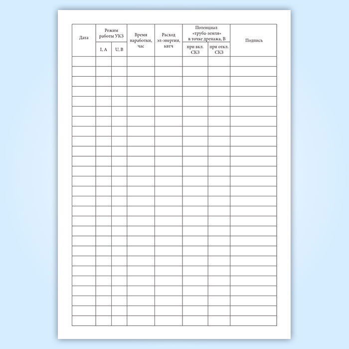 Полевой журнал учета работы установки катодной защиты в Сочи купить