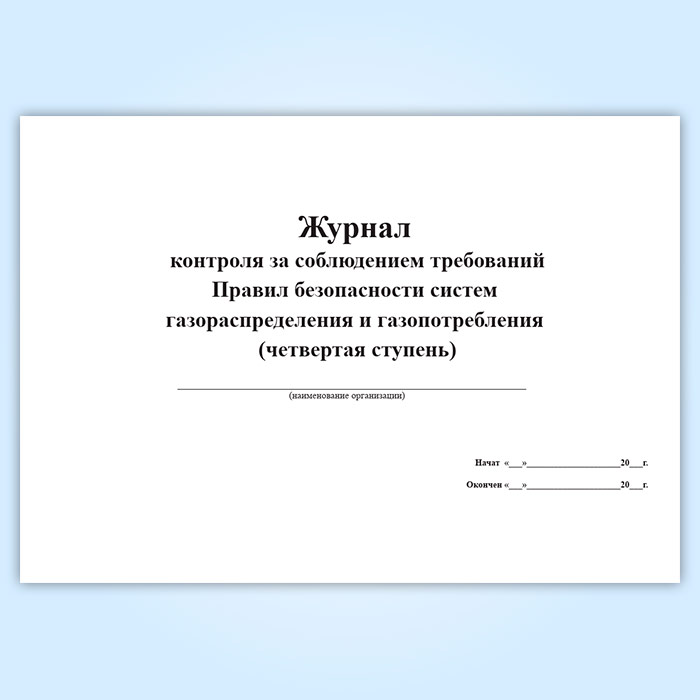 Журнал контроля за соблюдением требований Правил безопасности систем газораспределения и газопотребления (четвертая ступень) в Сочи купить
