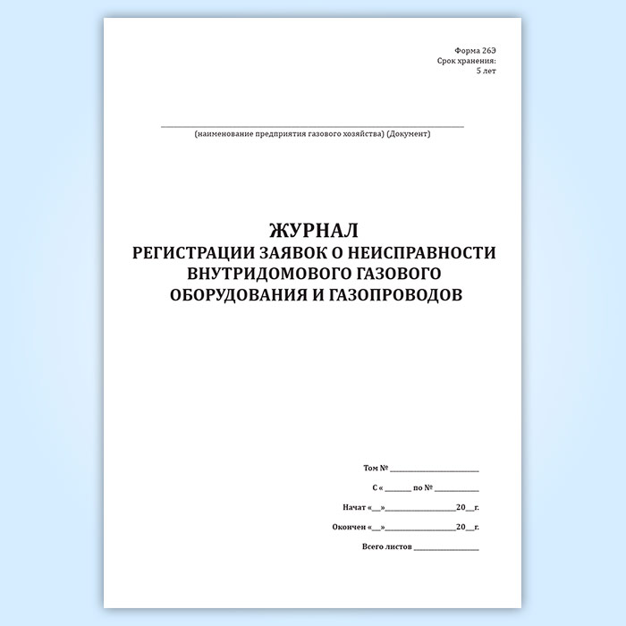 Журнал регистрации заявок о неисправности внутридомового газового оборудования и газопроводов (форма 26-Э) в Сочи купить