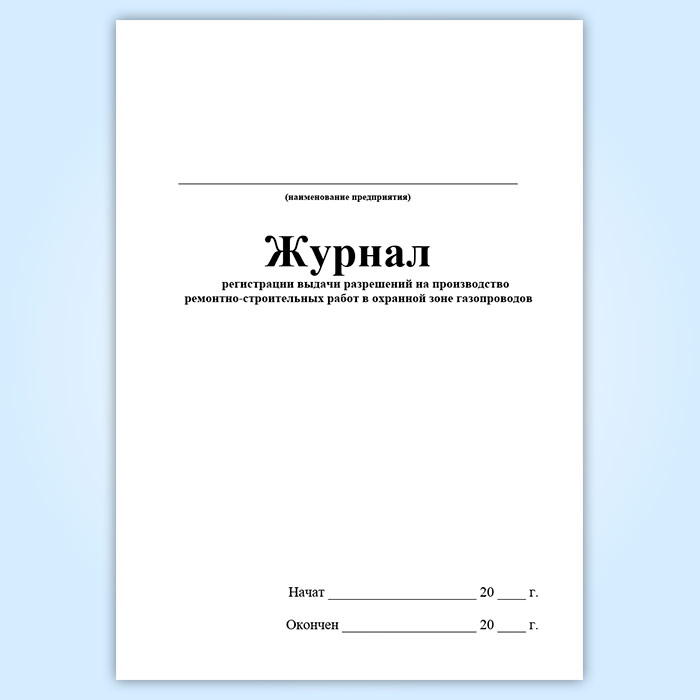 Журнал регистрации выдачи разрешений на производство ремонтно-строительных работ в охранной зоне газопроводов (ГЭГ-14) в Сочи купить