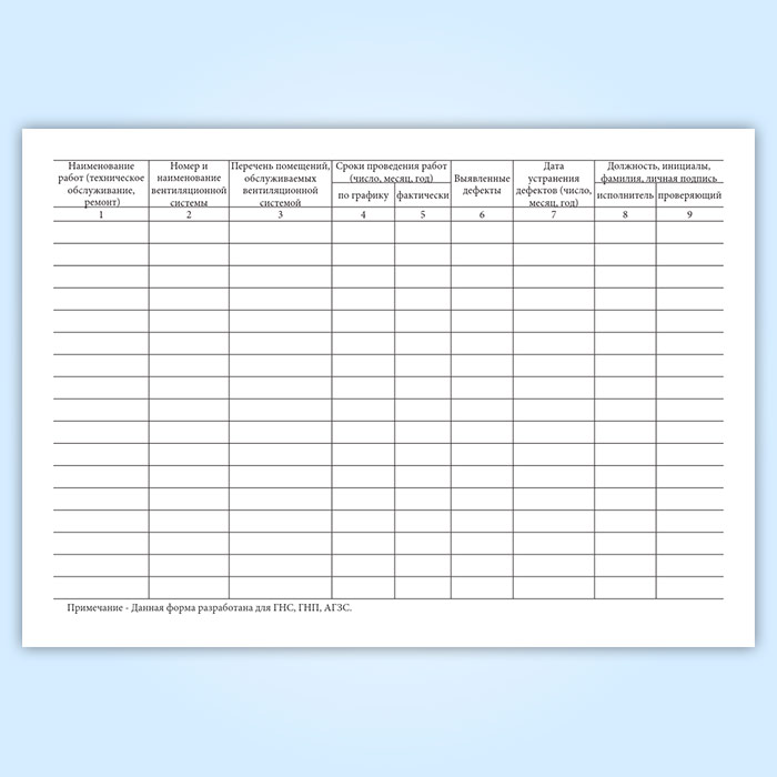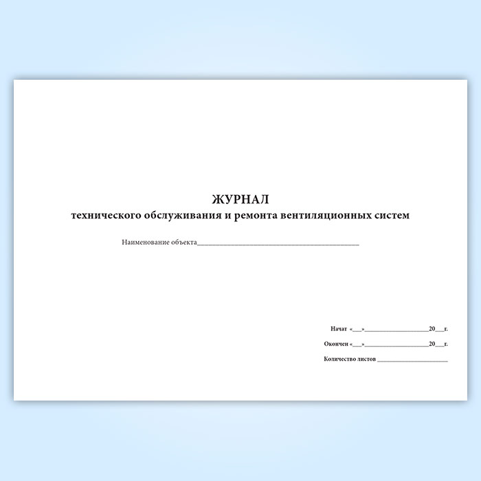 Журнал технического обслуживания и ремонта вентиляционных систем в Сочи купить