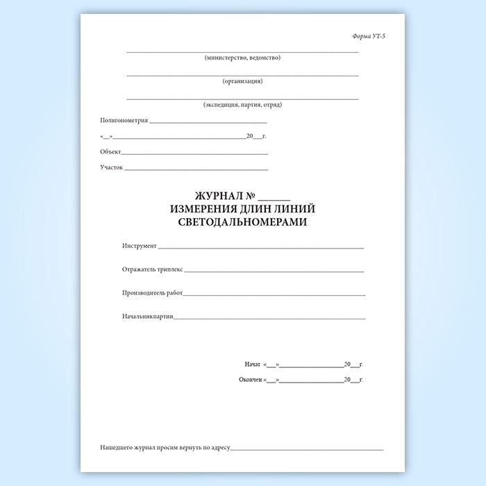 Журнал измерения длин линий светодальномерами (форма УТ-5) в Сочи купить