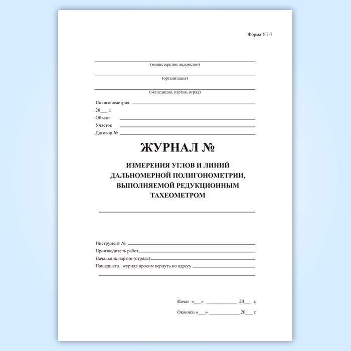 Журнал измерения углов и дальномерной полигонометрии, выполняемой редукционным тахеометром (форма УТ-7) в Сочи купить