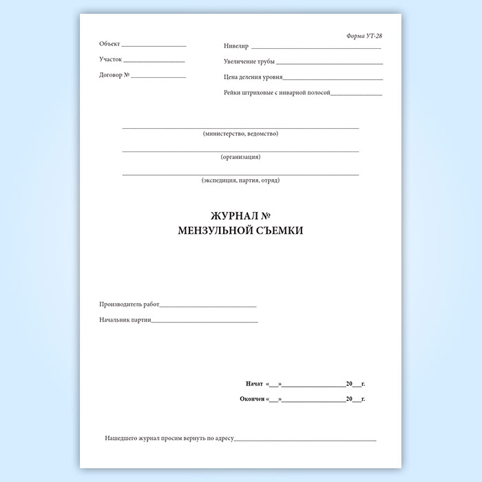 Журнал мензуальной съемки (форма УТ-28) в Сочи купить