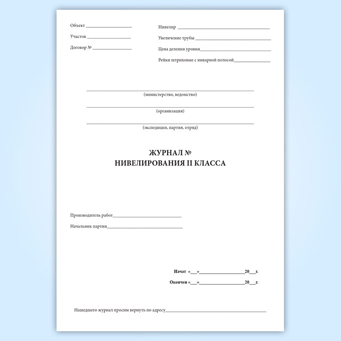 Журнал нивелирования II класса (форма УТ-8) в Сочи купить