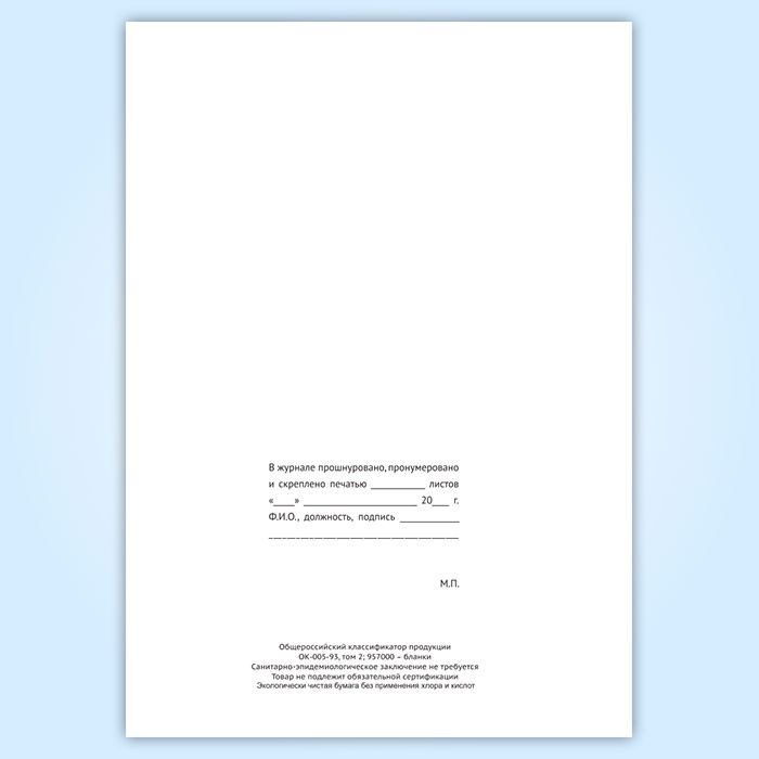 Вы получаете печатную продукцию прошнурованной и c местом для вашей печати в соответствии с действующими нормативными документами: