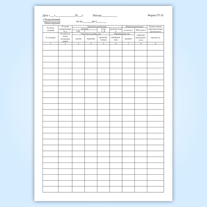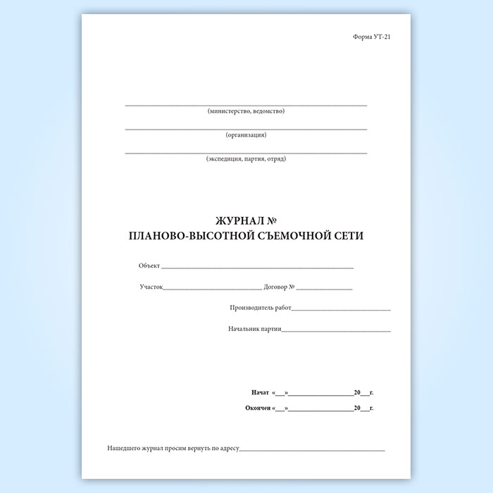 Журнал планово-высотной съемочной сети (форма УТ-21) в Сочи купить