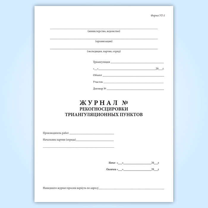 Журнал рекогносцировки триангуляционных пунктов (форма УТ-1) в Сочи купить