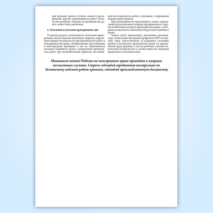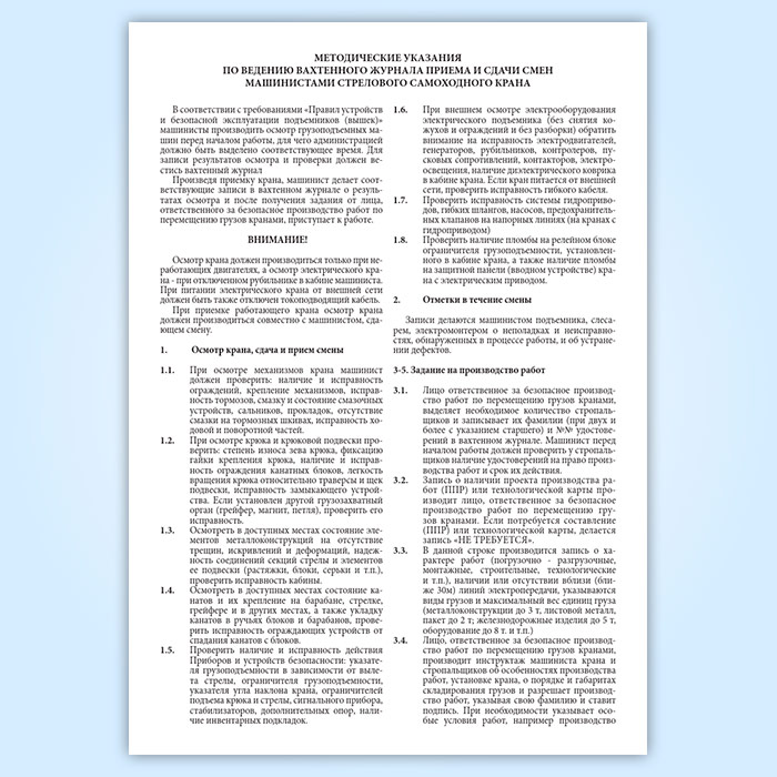 Вахтенный журнал приема-сдачи смен машинистами крана в Сочи купить