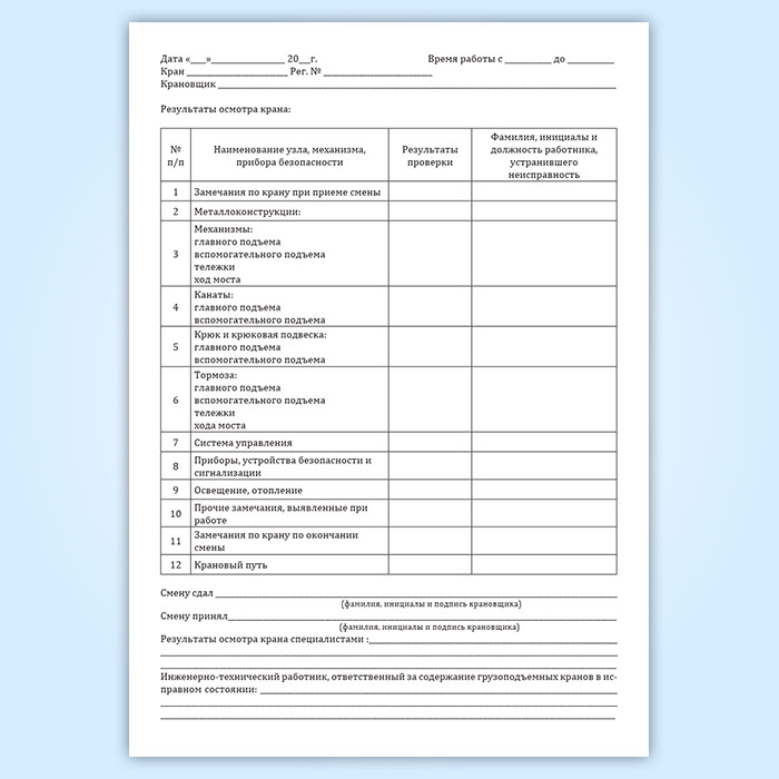 Вахтенный журнал машиниста мостового крана в Сочи купить