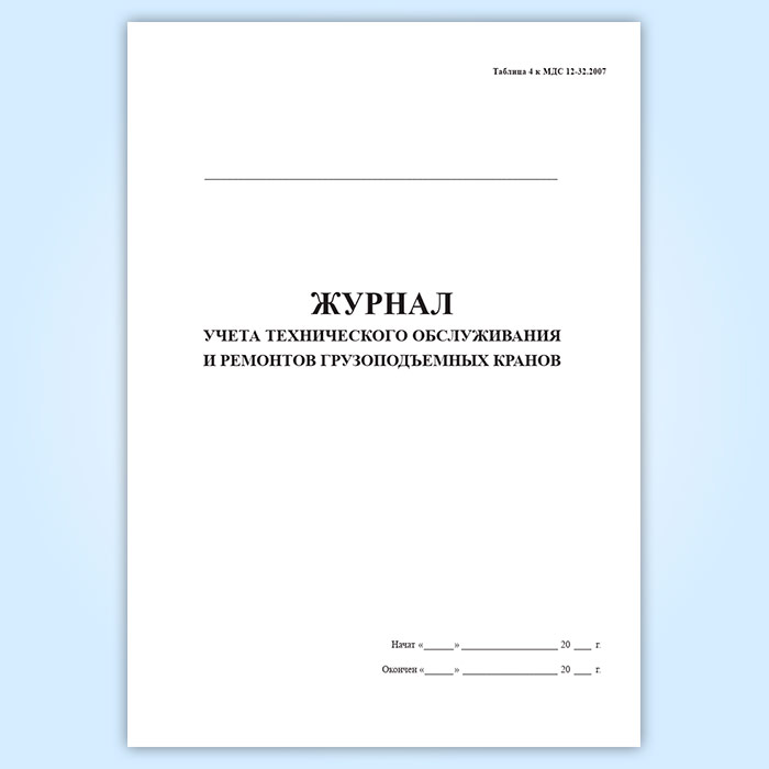 Журнал учета технического обслуживания и ремонтов грузоподъемных кранов в Сочи купить