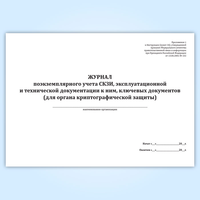 Журнал поэкземплярного учета СКЗИ, эксплуатационной и технической документации к ним, ключевых документов (для органа криптографической защиты) в Сочи купить