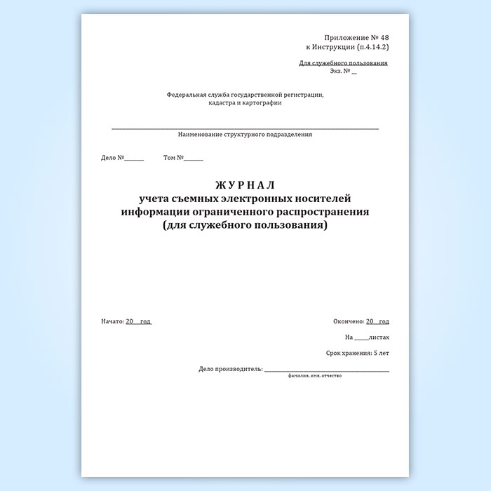 Журнал учета съемных электронных носителей информации ограниченного распространения (для служебного пользования) в Сочи купить