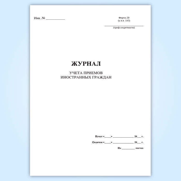 Журнал учета приемов иностранных граждан (форма 20) в Сочи купить