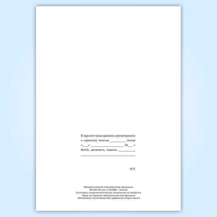 Вы получаете печатную продукцию прошнурованной и c местом для вашей печати в соответствии с действующими нормативными документами: