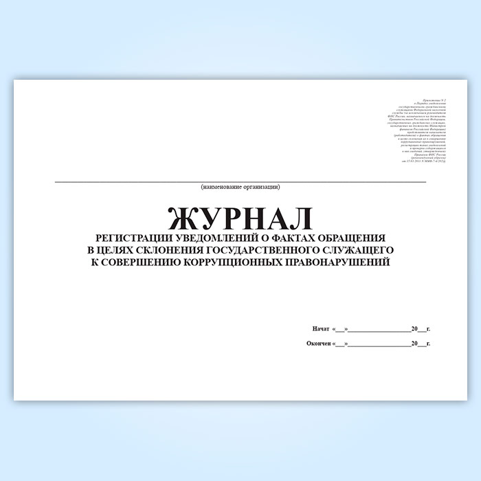 Журнал регистрации уведомлений о фактах обращения в целях склонения государственного служащего к совершению коррупционных правонарушений в Сочи купить