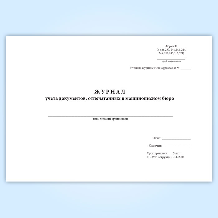 Журнал учета документов, отпечатанных в машинописном бюро (форма 32) в Сочи купить
