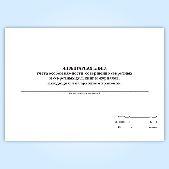 Инвентарная книга учета особой важности, совершенно секретных и секретных дел, книг и журналов, находящихся на архивном хранении в Сочи купить