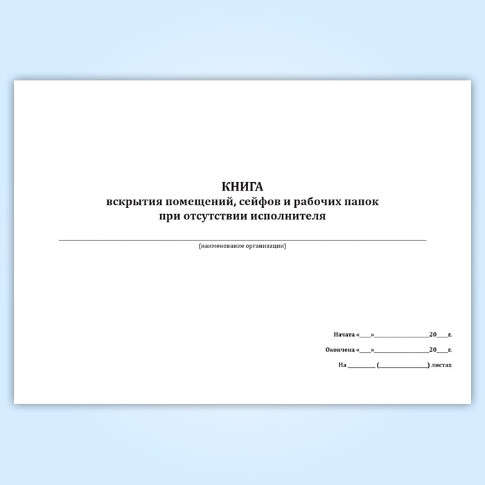 Книга вскрытия помещений, сейфов и рабочих папок при отсутствии исполнителя в Сочи купить