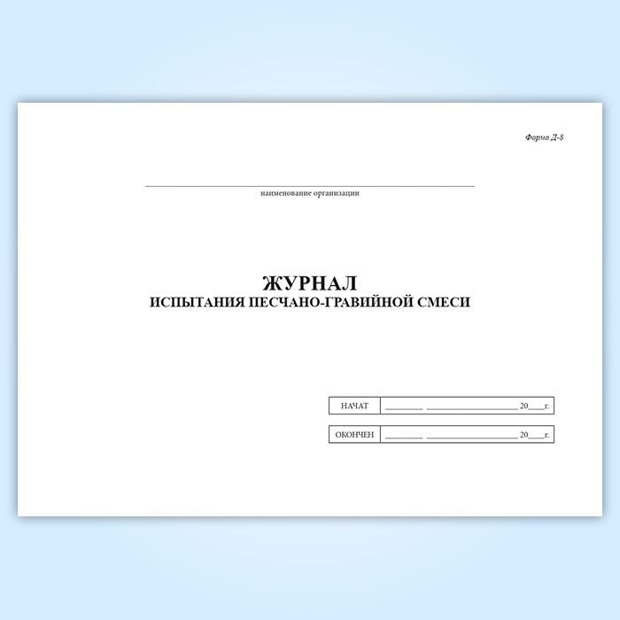 Журнал испытания песчано-гравийной смеси (форма Д-8) в Сочи купить