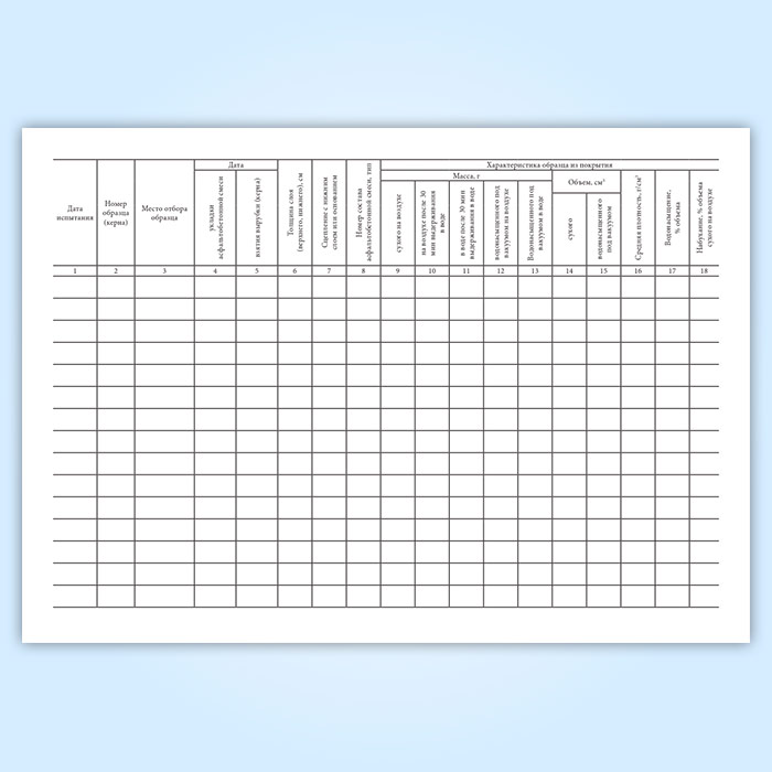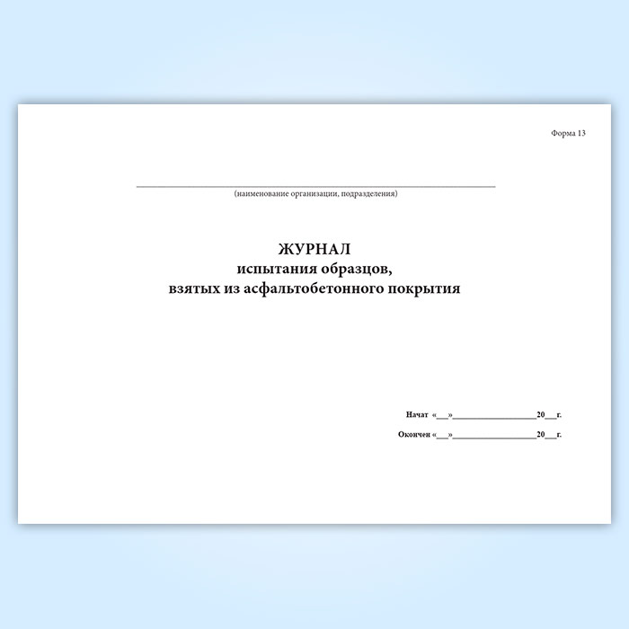 Журнал испытания образцов, взятых из асфальтобетонного покрытия (форма 13) в Сочи купить