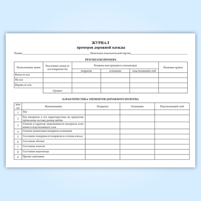 Журнал промеров дорожной одежды в Сочи купить