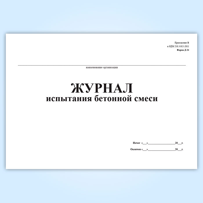 Журнал испытания бетонной смеси (форма № Д-24) в Сочи купить